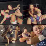 For 7 minuets Nadia dominates Sharon with a range of wrestling holds and submissions including head scissors, body scissors, armbar, camel clutch, British figure four leg lock, STO, triangle choke hold, abdominal stretch, cross face and many more submissions